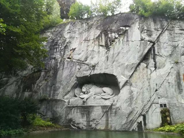 狮子纪念碑是一座负伤狮子的雕像,由丹麦雕塑家巴特尔·托瓦尔森设计雕刻而成。是为了纪念1792年法国大革命,暴民攻击法国杜乐丽宫(Tuileries)时,为保护法王路易十六及玛丽王后而死的786名瑞士军官和警卫所建的纪念碑,意在祈求世界和平。