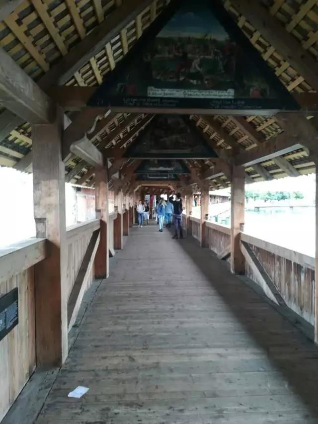 卡贝尔桥始建于1333年,也是欧洲最古老的有顶木桥。桥的横眉上绘有120幅宗教历史油画,记录着与卢塞恩有关的英雄人物事迹或战役以及对欧洲有着深远影响的黑死病,从中可领略卢塞恩的一股浪漫中古情怀。